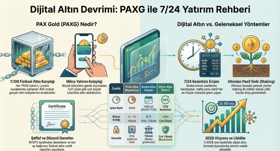 Küresel bankaların (örneğin Goldman Sachs) 2026 sonu için öngördüğü 5.400 dolarlık ons altın hedefi, dijital altına olan ilgiyi daha da kamçıladı. Merkez bankalarının rezervlerini altına kaydırması ve BRICS ülkelerinin dijital para birimi projeleri, blockchain tabanlı altın varlıklarının gelecekte "standart" haline geleceğini gösteriyor.